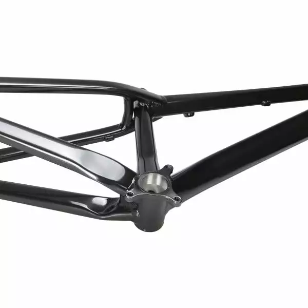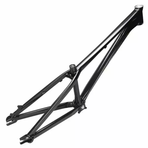 Conçu pour être associé à une fourche 26″ à débattement de 100 mm, ce nouveau cadre est composé de 6 tubes hydroformés en aluminium à sections variables. Cette fabrication, idéale pour le Pumptrack, le Dirt ou encore le Slopestyle offre une excellente rigidité, un poids optimal et un design unique.