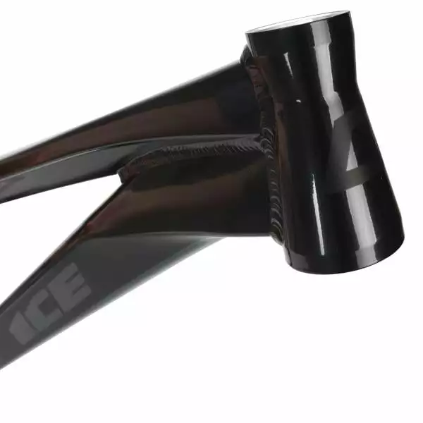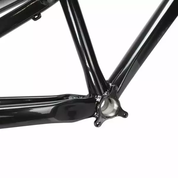 La douille de direction conique permet également un transfert d’énergie optimal et un maximum de précision. On retrouve enfin une patte arrière de 10 mm autorisant l’installation de frein à disque et un montage pour anti-dérailleur ISCG-05 au niveau du pédalier.